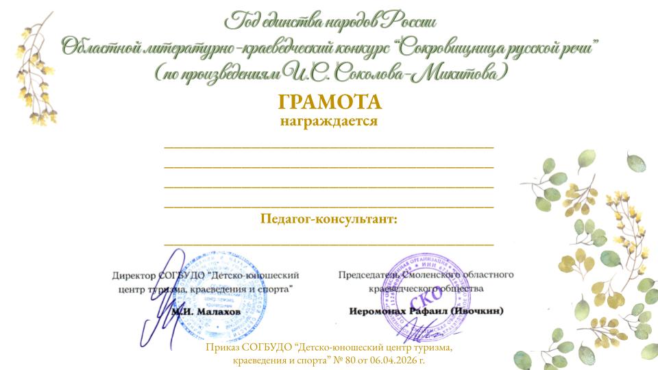 Областной литературно-краеведческий конкурс творческих работ "Истоки радости и добра", посвященный 125-летию со дня рождения И.С. Сколова-Микитова
